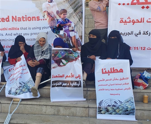 حيث نفذ المطالبون وقفة احتجاجية، عبروا فيها عن أسفهم لضلوع برامج أممية، في دعم مليشياالحوثي تحت غطاء مشاريع نزع الألغام، ودعمها بملايين الدولارات والتدريب الميداني والدعم الفني، رغم إدراكه المسبق بأنها تحمل مشروع موت لليمنيين ولا علاقة لها بالسلام، وفقاً لتقارير حقوقية أخيرة.