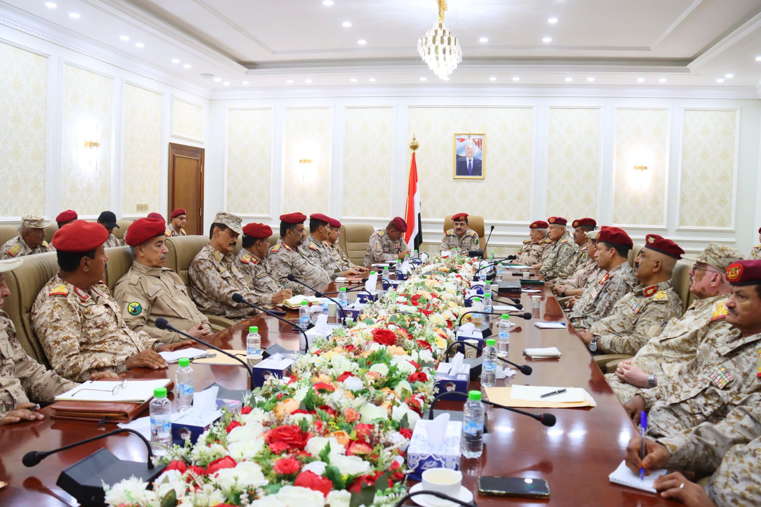 وفي مستهل الاجتماع الذي حضره نائب رئيس هيئة الأركان العامة، اللواء الركن احمد البصر، نقل وزير الدفاع للحاضرين تحيات القيادة السياسية والعسكرية العليا ممثلة بفخامة الرئيس الدكتور رشاد محمد العليمي، رئيس مجلس القيادة الرئاسي، وأعضاء المجلس ودولة رئيس الوزراء.