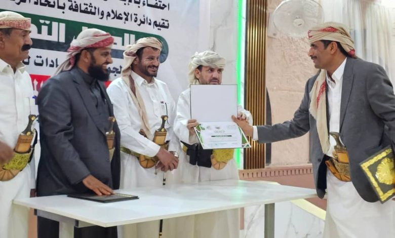 جاء ذلك خلال الحفل التكريمي للفائزين بالمراكز الثلاثة الأولى من الشعراء والشاعرات في مسابقة شاعر المطارح التي نظمت بمناسبة الذكرى الـ 11 لتأسيس مطارح نخلا والسحيل لمقاومة مليشيا الحوثي الإرهابية.