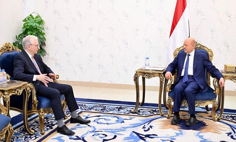 وفي اللقاء أشاد رئيس مجلس القيادة الرئاسي بموقف جمهورية ألمانيا الاتحادية إلى جانب الشعب اليمني، وقيادته السياسية، وتدخلاتها الانمائية، كأحد أكبر المانحين لخطة الاستجابة الإنسانية.