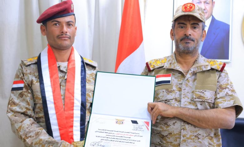 كرّم رئيس هيئة الأركان العامة قائد العمليات المشتركة الفريق الركن دكتور صغير حمود بن عزيز، اليوم الثلاثاء بمقر رئاسة هيئة الأركان، النقيب مصطفى محمد علي الجهمي من منتسبي المنطقة العسكرية الأولى.
