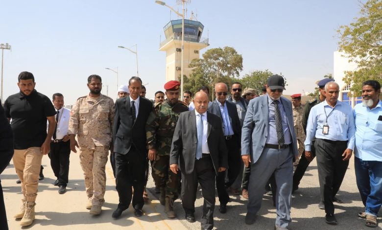 عضو مجلس القيادة الخنبشي يتفقد المواقع العسكرية المتضررة بمطار الريان ويدشن فيه أولى الرحلات الدولية