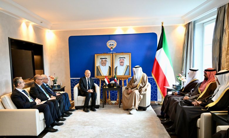 رئيس مجلس القيادة يبحث ورئيس الوزراء الكويتي العلاقات الثنائية والدعم المطلوب للحكومة الجديدة