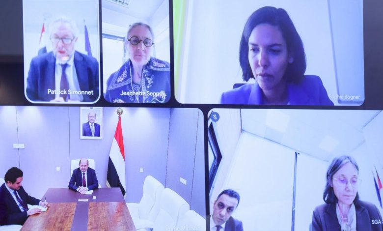 وتناول الاجتماع المنعقد عبر الاتصال المرئي، بمشاركة سفراء فرنسا، والمانيا، وهولندا، ما يمكن ان يقدمه الاتحاد والدول الأوروبية من دعم لجهود الحكومة في تنفيذ مشروع برنامجها للعام 2026م، وأولويات التعاون في القطاعات الحيوية لتخفيف معاناة المواطنين، إضافة الى تقليل التداعيات المحتملة على اليمن جراء التطورات في المنطقة.