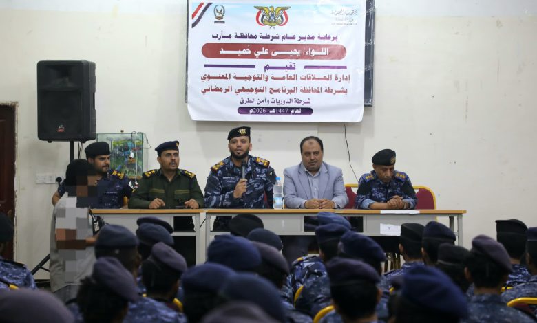 أقامت إدارة العلاقات العامة والتوجيه بشرطة محافظة مأرب، اليوم الخميس، برنامجاً توجيهياً توعوياً وأمسية رمضانية لمنتسبي شرطة الدوريات وأمن الطرق بالمحافظة، برعاية مدير عام شرطة المحافظة اللواء يحيى حُميد، وذلك في إطار جهود تعزيز الوعي المهني والوطني لدى الأجهزة الأمنية.