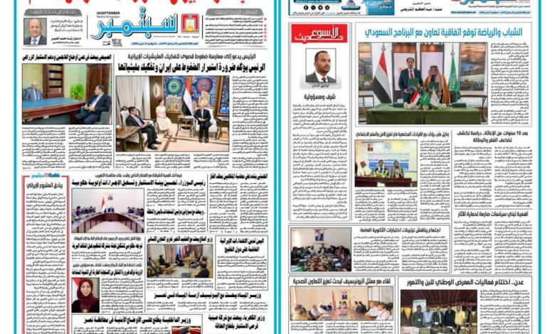 تصفح العدد 2236 من صحيفة 26 سبتمبر الصادر يوم الخميس 12 أبريل 2026