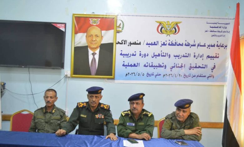 شرطة تعز تدشن برنامجاً تدريبياً تخصصياً لتعزيز كفاءة التحقيق الجنائي وتطبيقاته العملية لمنتسبيها