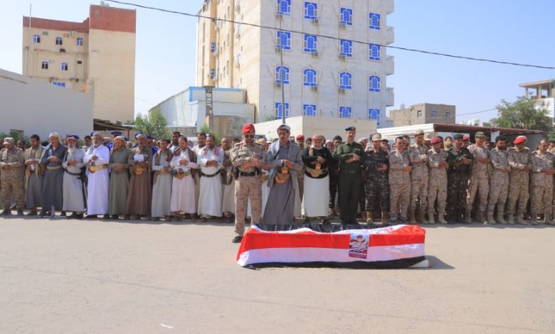 شيع اليوم الخميس، بمدينة مأرب، في موكب جنائزي مهيب رسمي وشعبي جثمان الشهيد البطل النقيب محمود غالب صبر، والذي استشهد وهو يؤدي واجبه الوطني في مقدمة صفوف الجيش دفاعًا عن الثورة والجمهورية والمكتسبات الوطنية ضد تنظيم جماعة الحوثي الإرهابية المدعومة من إيران.
