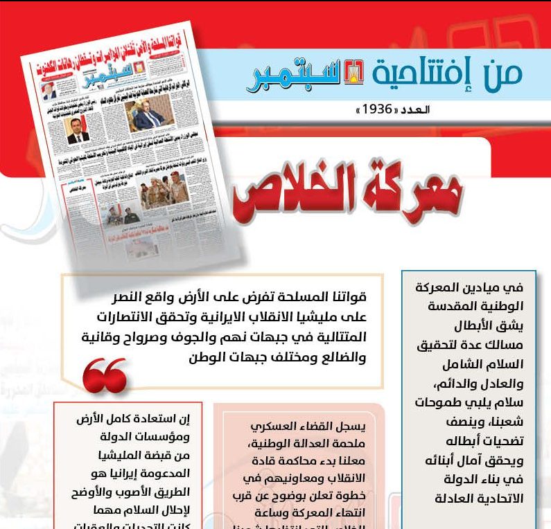 تقرأون اليوم في العدد الأسبوعي الجديد من صحيفة 26 سبتمبر