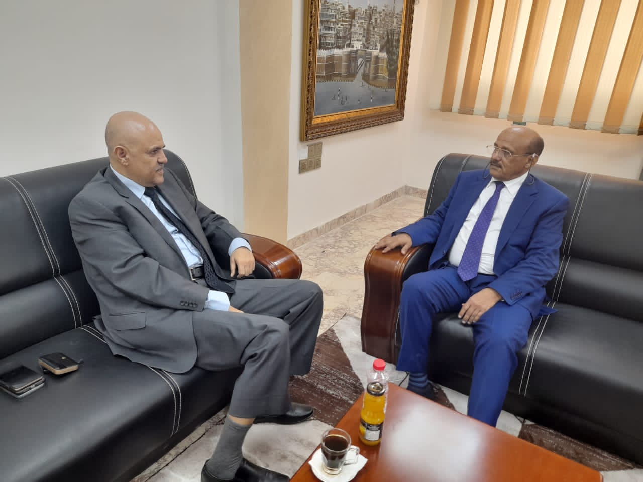 شمسان يناقش مع محافظ البنك المركزي الأوضاع المالية والنقدية بمحافظة تعز