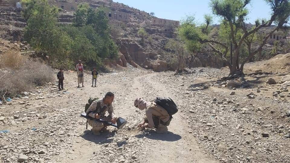 قوات الجيش تواصل تطهير المناطق المحررة غرب تعز من الألغام الحوثية
