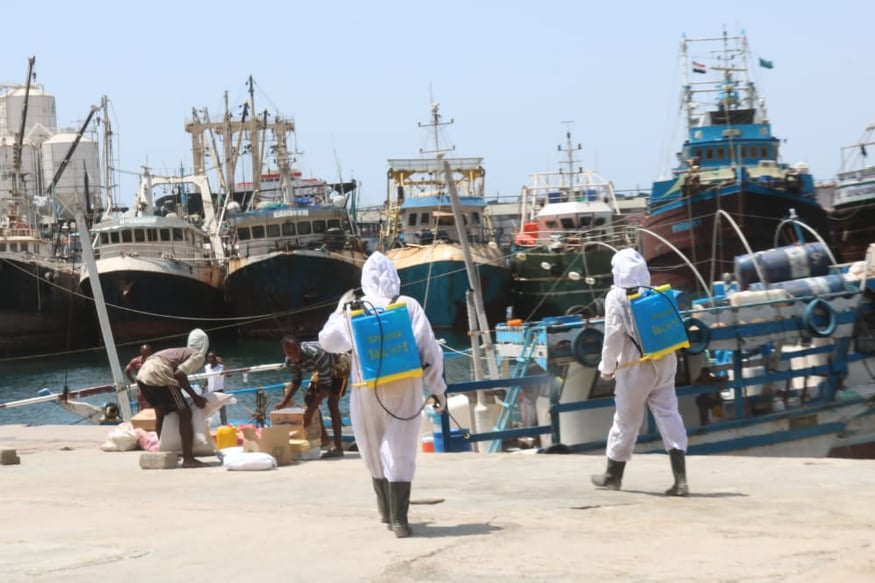 التوجيه المعنوي بخفر السواحل ينفذ حملة توعوية عن مخاطر كورونا في ميناء المكلا